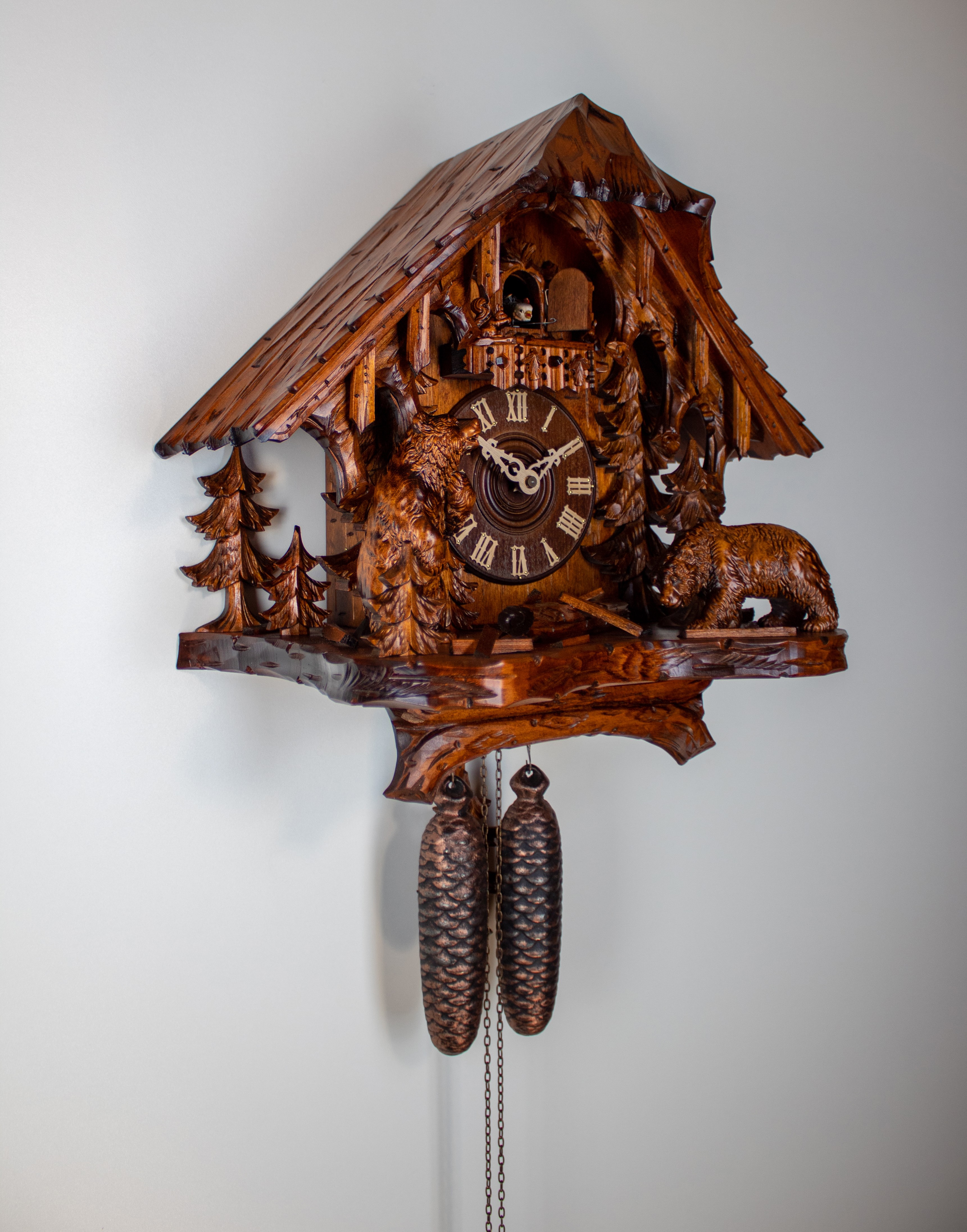8 Tage Kuckucksuhr Schwarzwaldhaus mit Bären