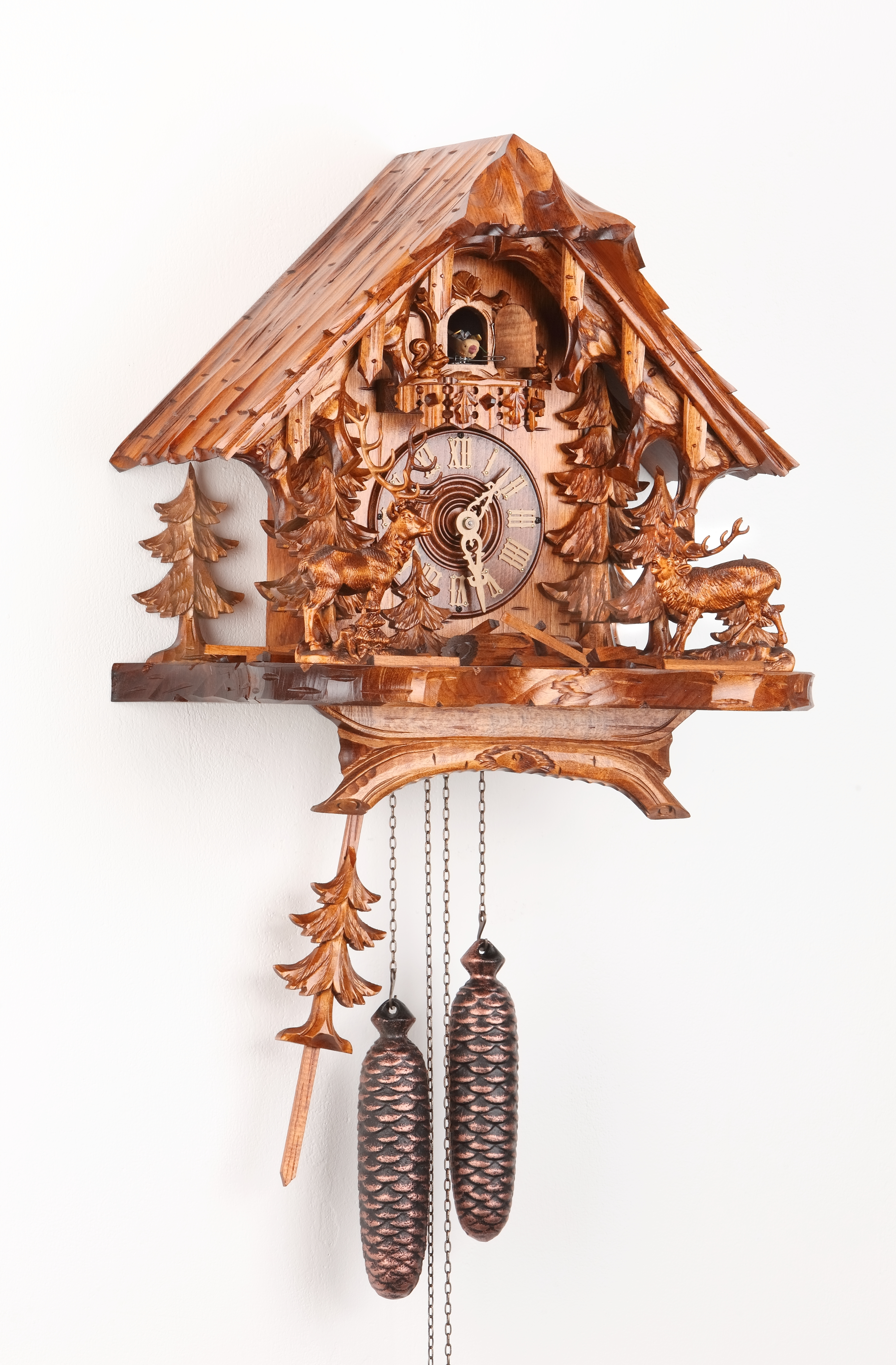 8 Tage Kuckucksuhr Schwarzwaldhaus mit Hirsche