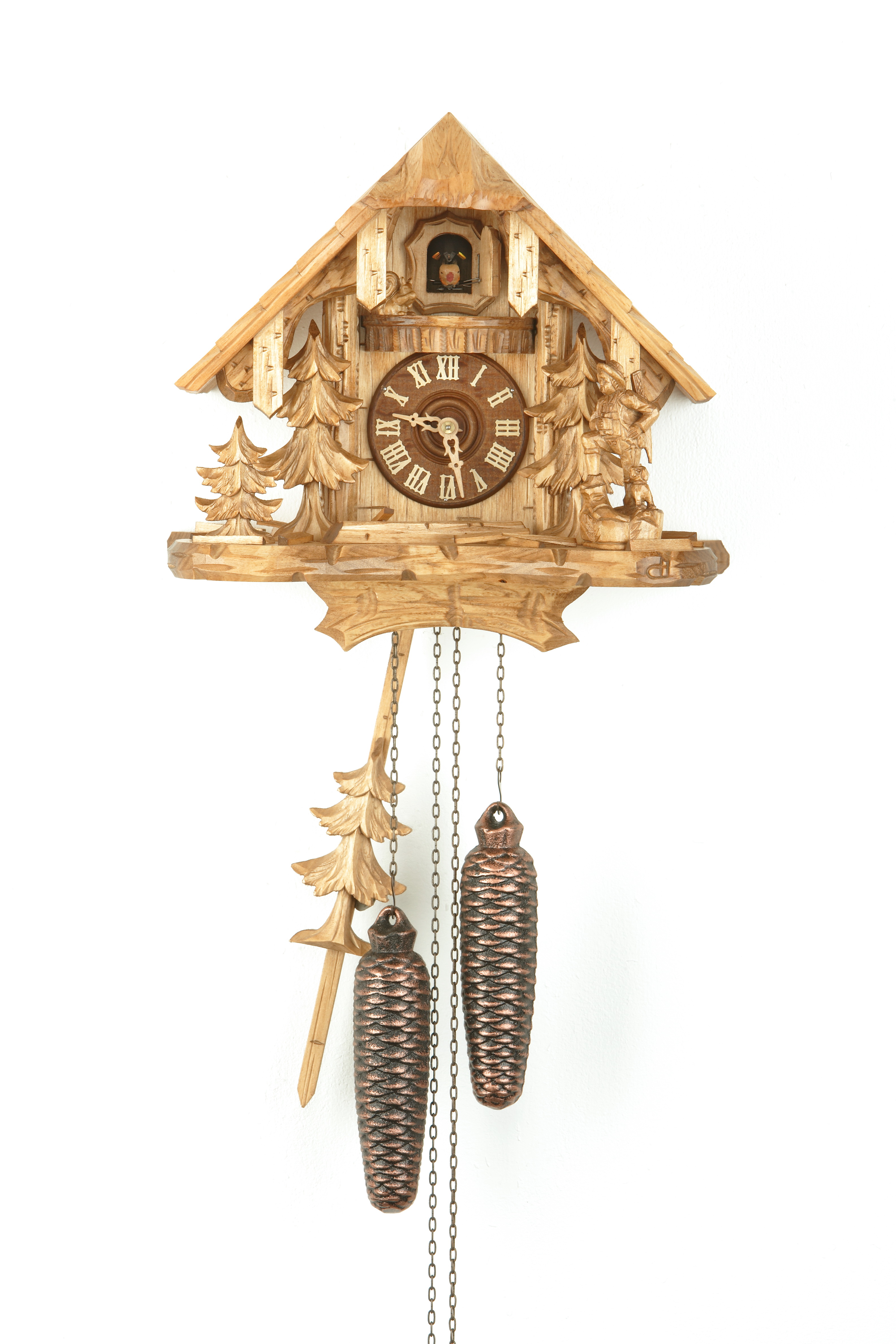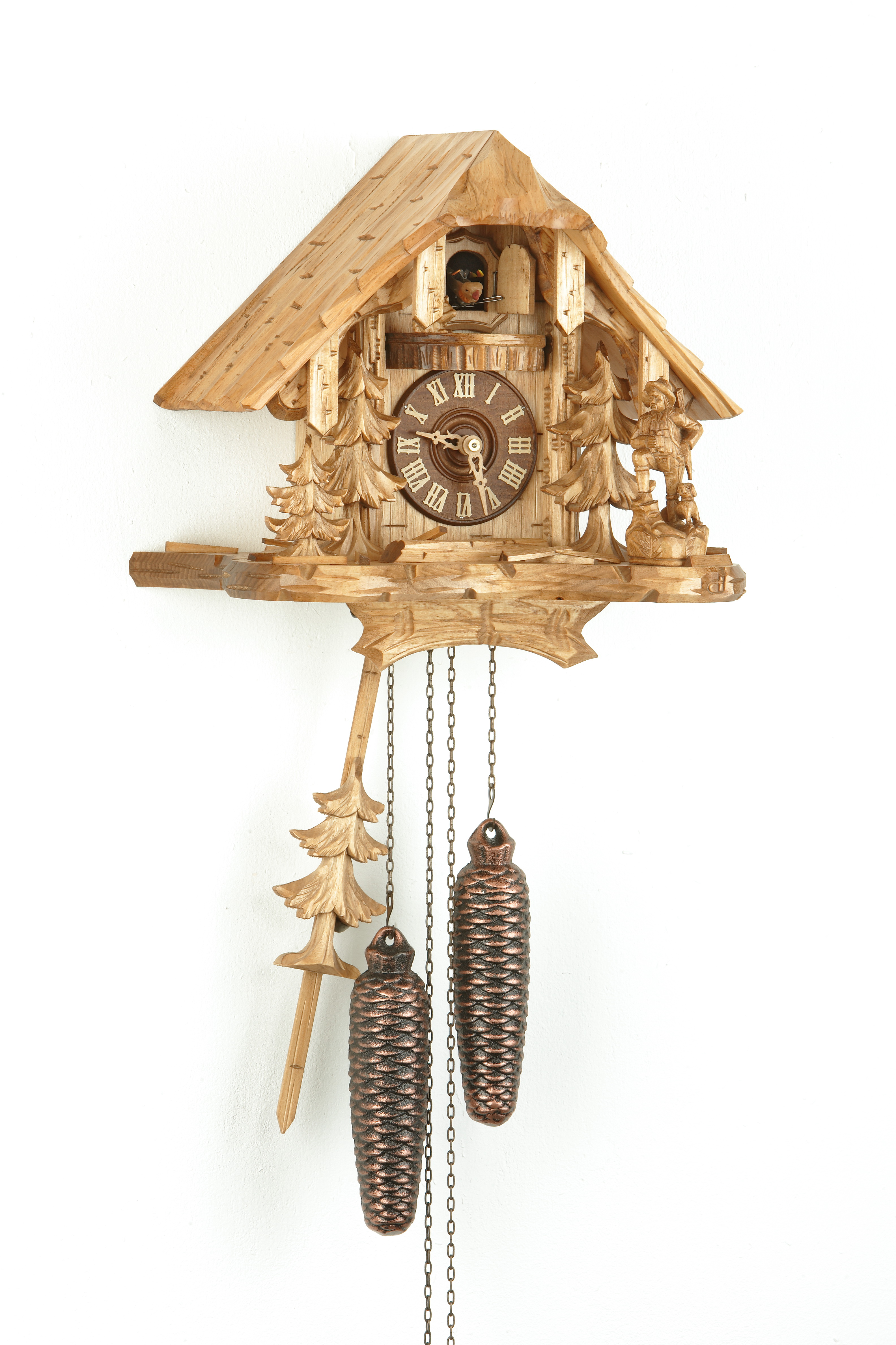 8 Tage Kuckucksuhr Schwarzwaldhaus mit Jäger und Eichhörnchen
