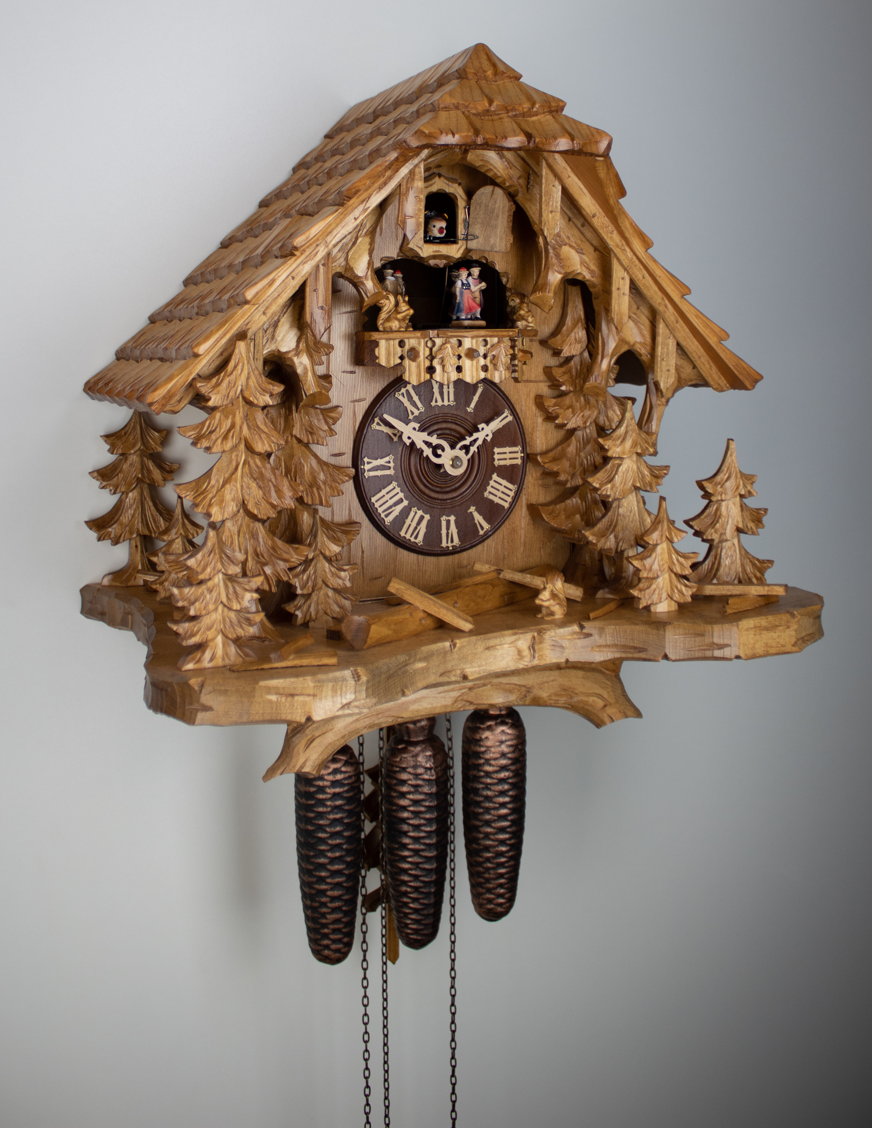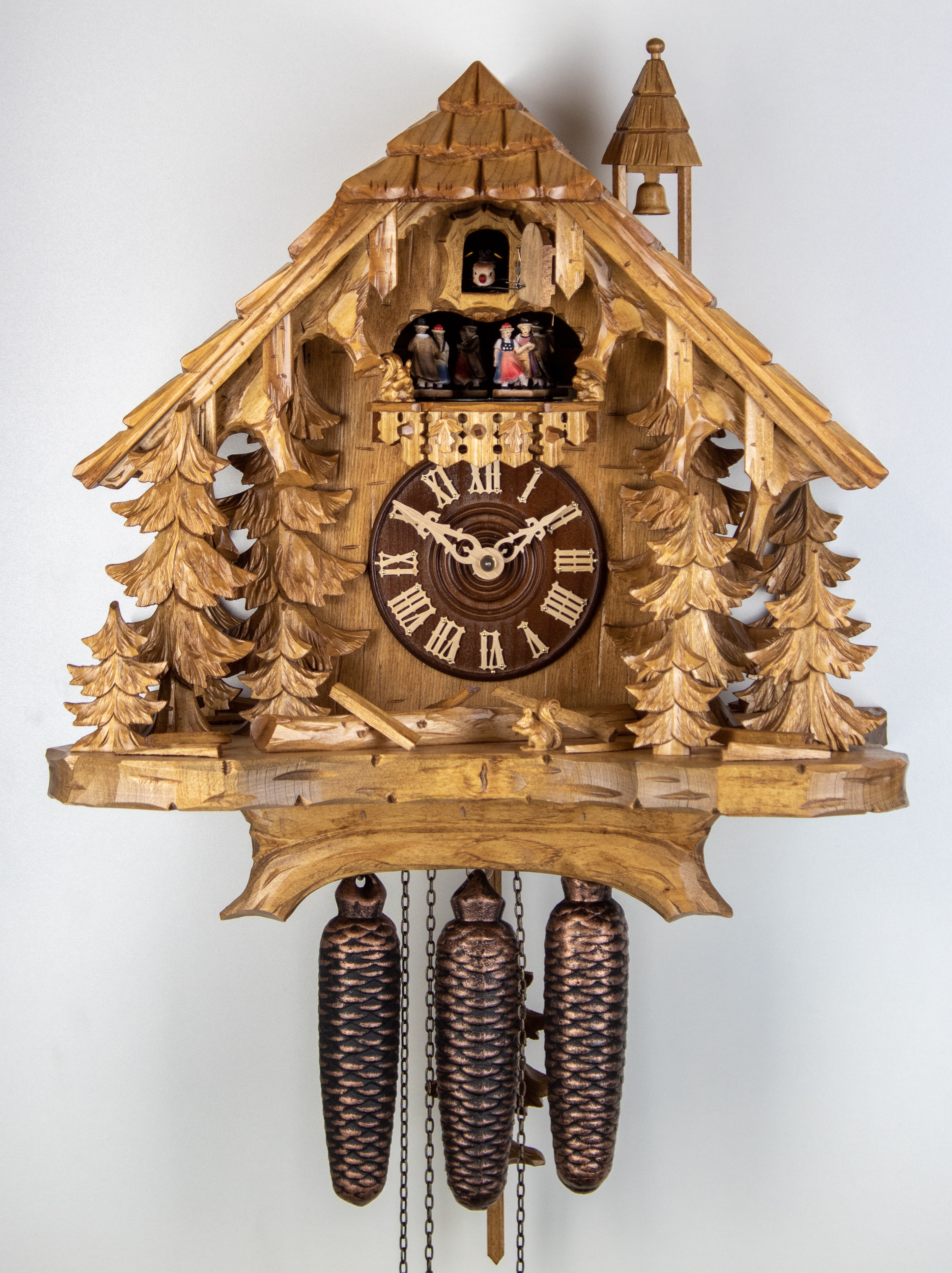 8 Tage Musik Tänzer Kuckucksuhr Schwarzwaldhaus mit Eichhörnchen